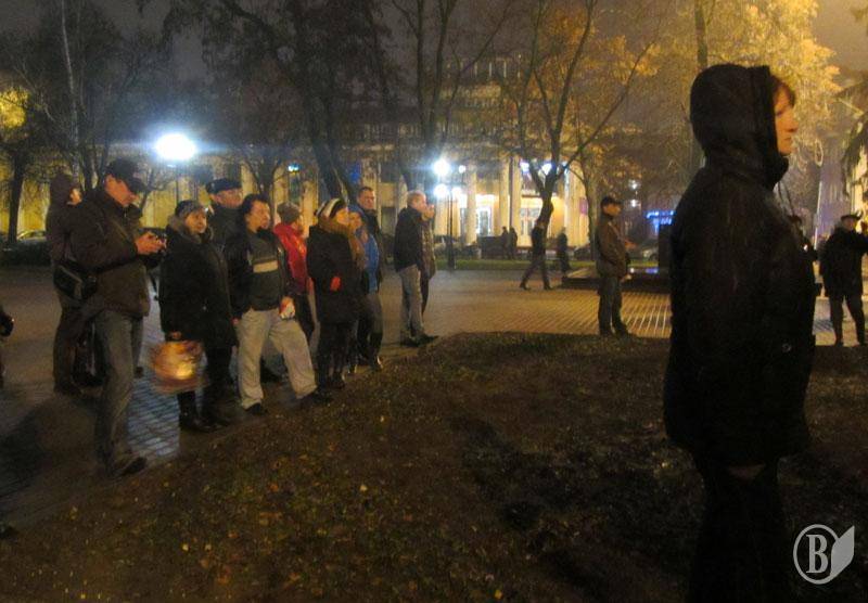 Учора на 18:00 у сквері Попудренка зібралися 150 чоловік, щоб своєю присутністю сказати: ми за право людини на вільні зібрання. У сквері і на підступах до нього чергувало близько 50 міліціонерів лише в формі! Так було під час ГКЧП у сквері Богдана Хмельницького у 1991 році.