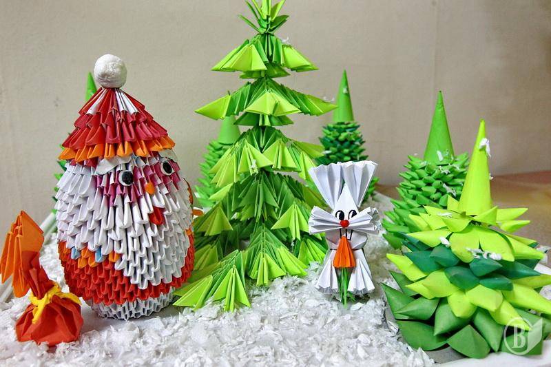 Роботи, представлені на виставці зроблені у різноманітних техніках - традиційне оригамі, модульне ори гамі, паперопластика, кірікомі — оригамі, гофрування, квілінг, пап'є-маше, тощо...