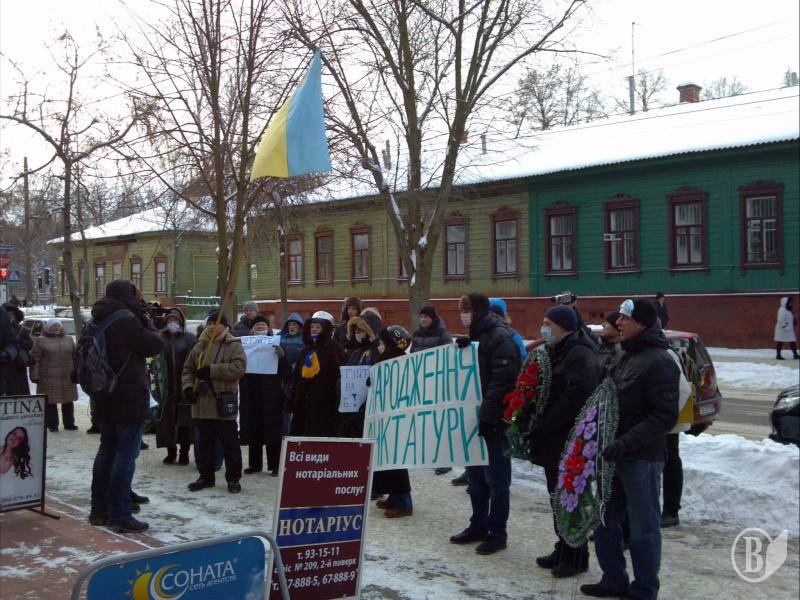 Акция «Похороны демократии» двинулась к центру города. В частности, к офисам Партии регионов.