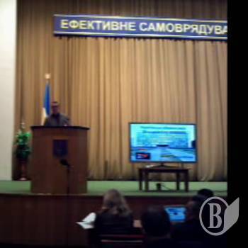 На позачерговій сесії облради першим виступив Олександр Кодола, голова фракції «Батьківщина».