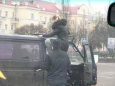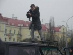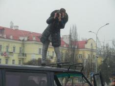 Сегодня она - на «броневике» в поиске наилучшего кадра. Харди, как фотограф, с участниками автопробега.