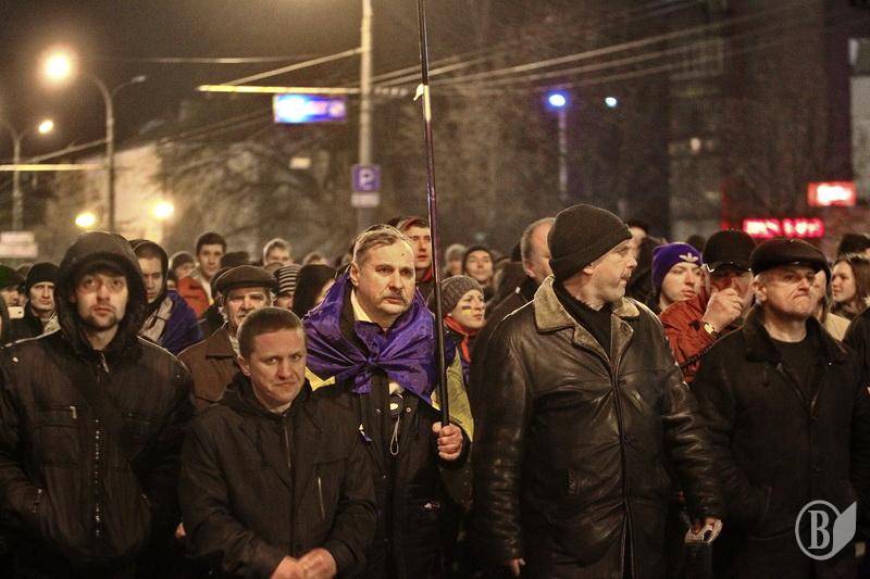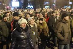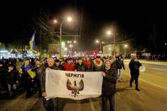 Такого вечірнього віче в Чернігові ще не було. Рекордно 19 лютого після 18:00 на центральну Красну площу вийшло 2,5-3 тисячі людей.