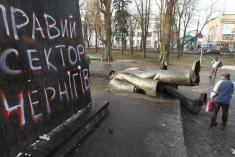 Черниговский скульптор Геннадий Ершов, который в настоящий момент находится в польском городе Гданске, предложил Чернигову поставить памятник погибшим героям украинцам на месте памятника Ленину.