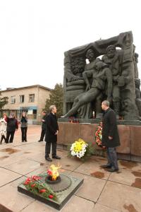 Керівники області разом з представниками корюківської громади поклали квіти до могил загиблих, оглянули місце будівництва Меморіального комплексу та поспілкувалися зі ЗМІ.