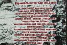 Довідково. Корюківська трагедія — наймасштабніший злочин проти людяності періоду Другої світової війни. Протягом 1-2, 9 березня 1943 року каральні загони нацистів вбили майже 7 тисяч жителів Корюківки, знищивши при цьому і саме містечко.