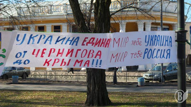 Як повідомляв «Високий Вал» , близько тисячі чернігівців прийшли народне на віче. Вони протестували проти військової агресії Росії в Криму і закликати вступися в конфлікт війська США і НАТО, щоб гарантувати неподільність, єдність, соборність і незалежність України.