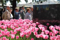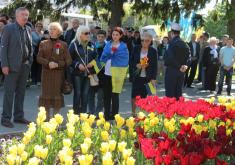 У участников мероприятий на груди были прикреплены сине-желтые ленты и символические красные цветы мака.