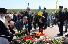 Руководство города и области, депутаты, ветераны и жители в 10:05 возложили цветы к братской могиле освободителям Чернигова в сквере им.Попудренко около центральной площади.