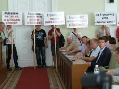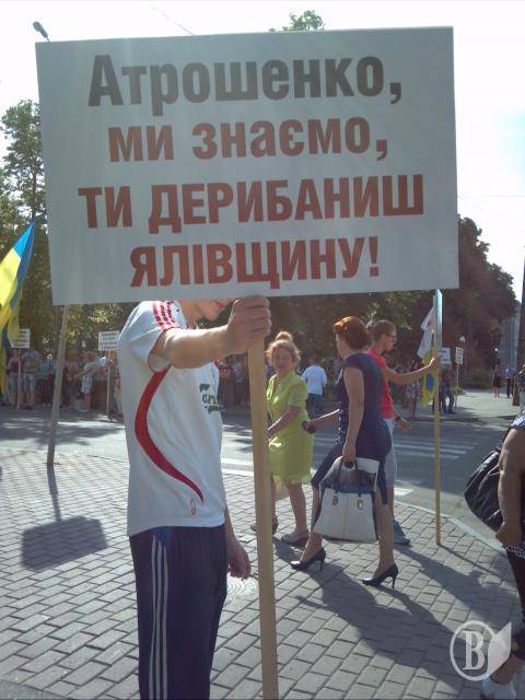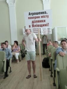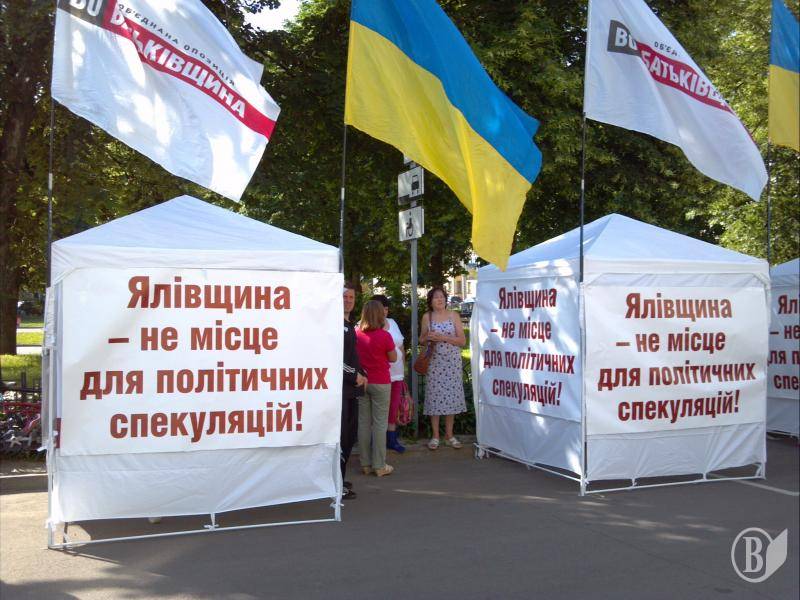 «Атрошенко, поверни місту ділянки в Ялівщині» - з такими плакатами зранку вийшли прихильники партії «Батьківщина» під стіни міськради.
