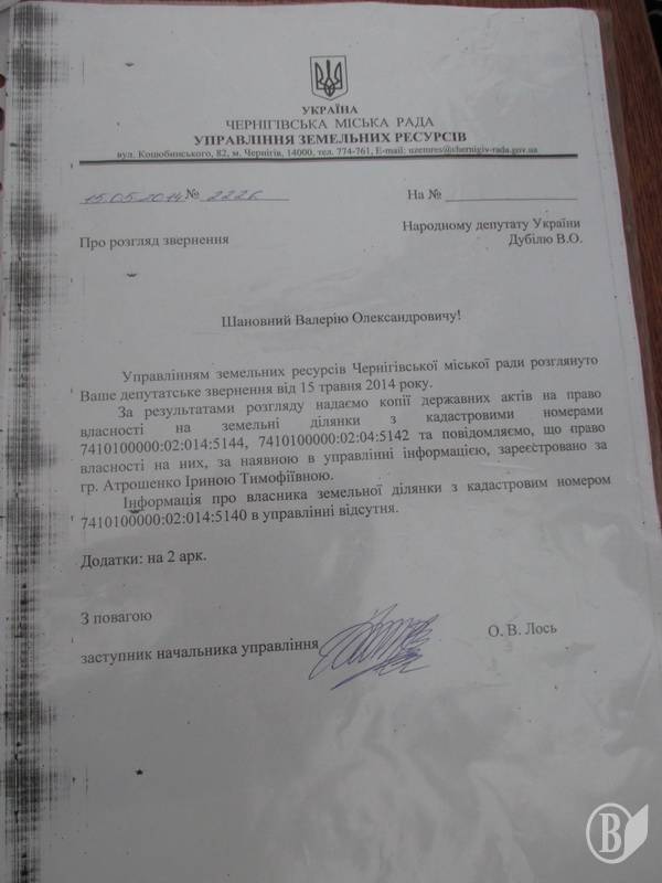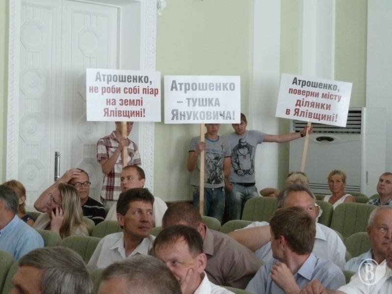 Народний депутат, на їхню думку, останнім часом спекулює на проблемі «Ялівщини», а сам - нечистий на руку. Депутат міської ради Олег Русін продемонстрував протестувальникам документи, згідно з якими дружина Владислава Атрошенка Ірина Тимофіївна володіє понад 33-ма сотками заповідних земель у районі Ялівщини.