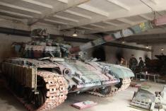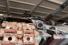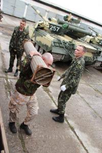 Вскоре мы пошли на обед. Обычно солдаты в столовой почти не едят, туда ходят чтобы разве что похлебать супца. Трапеза у меня была спартанская. Салат из буряка, жидкий суп и … повторно используемая одноразовая посуда. И по виду моей ложки было видно, что ее грыз очень голодный солдат, а может даже и микромайор. Не могу сказать, что я наелся, но потом это поправили в каптерке – подкормив консервами и бутербродами. Спасибо им за это огромное. Кроме того, местное население и самооборона помогают служивым едой. После подзаправки, мы снова отправились в боксы. Там я уже смог посидеть в танке. На вид грозная махина, а вот поди ж ты: в бою живет не больше 5 минут, плюс если услышал, что слой активной брони с коробки снят взрывом – беги. Грустно было узнать, что если дуло танка стоит прямо, то водитель танка не выберется из машины в случае пожара. И еще добавьте туда новые противотанковые системы….короче страшилок я наслушался.