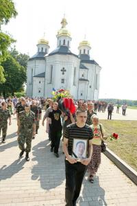 Загиблого під Луганськом чернігівця, 28-річного Миколи Бруя, відспівали учора в Катерининській церкві Чернігова.