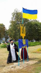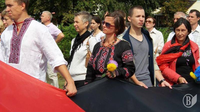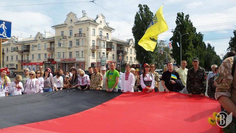 Чернігівські патріоти після закінчення офіційних заходів 24 серпня пройшли з державним синьо-жовтим прапором і та прапором українських націоналістів по центральній алеї міста.