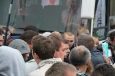Після виступів сотні людей ринулися до сцени і оточили головного радикала. Це нагадувало рій, який переміщався по площі. Через 15 хвилин «бродіння» по майдану, Ляшку вдалося добратися до машини, помахати рукою і поїхати на нові зустрічі.