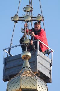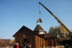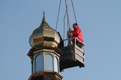 Уперше на Чернігівщині кандидат у Раду установив хрест на купол церкви - фото,відео