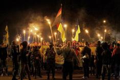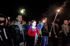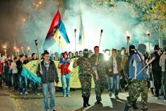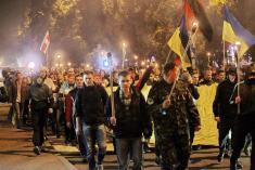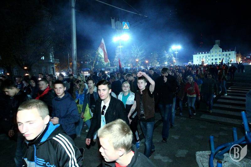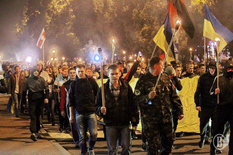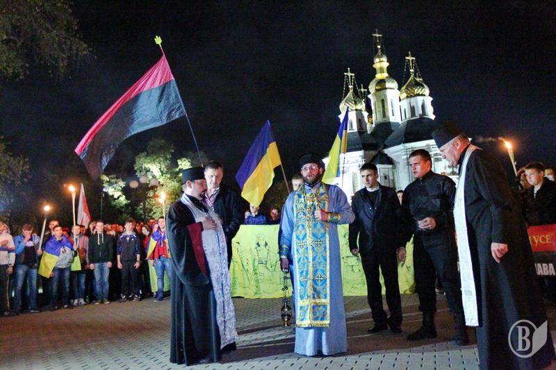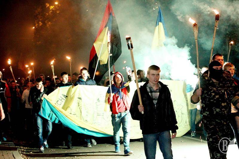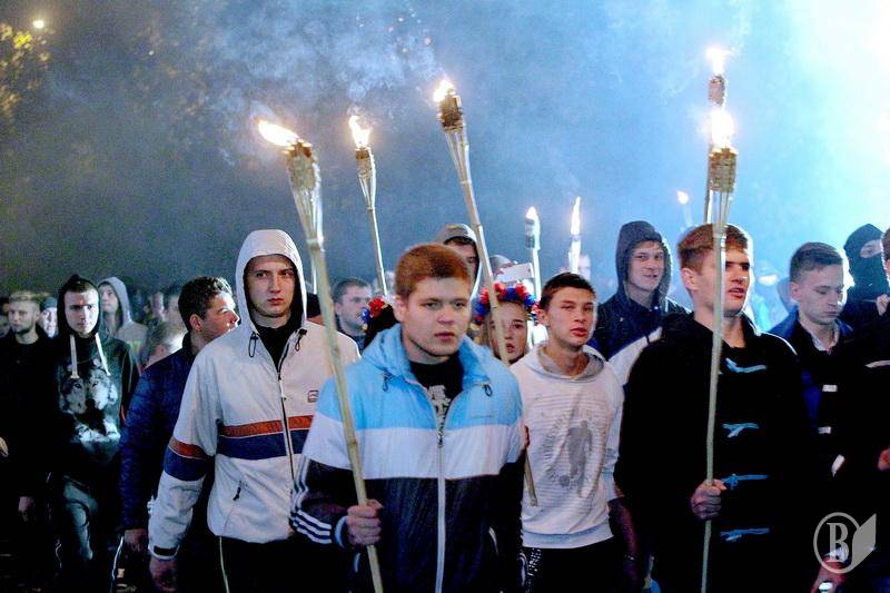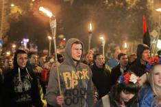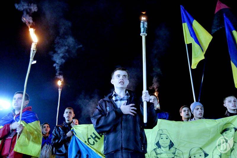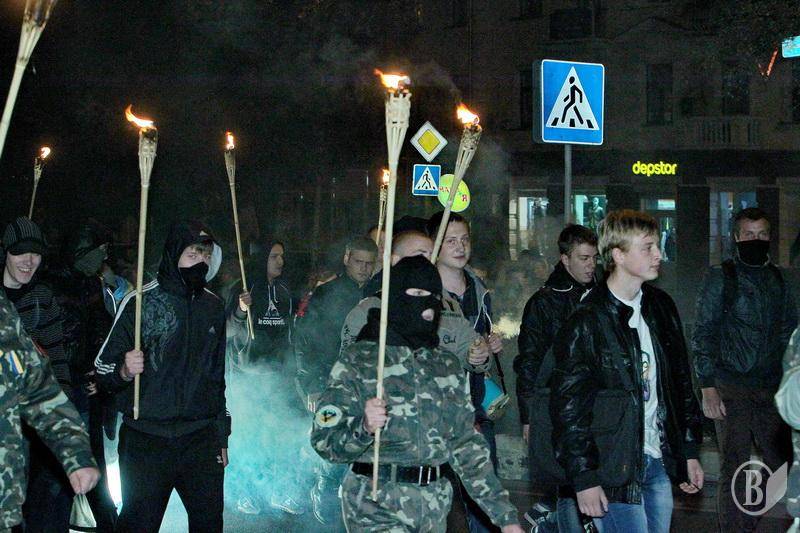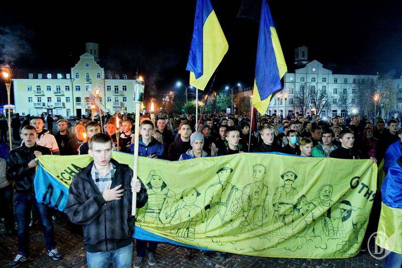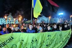 „Одна , єдина, соборна Україна!” , „Слава Україні! - „Героям слава!”, „Слава нації! – Смерть ворогам!” – такі гасла скандували учасники патріотичної ходи через центр міста сьогодні увечері на честь Дна захисника України.