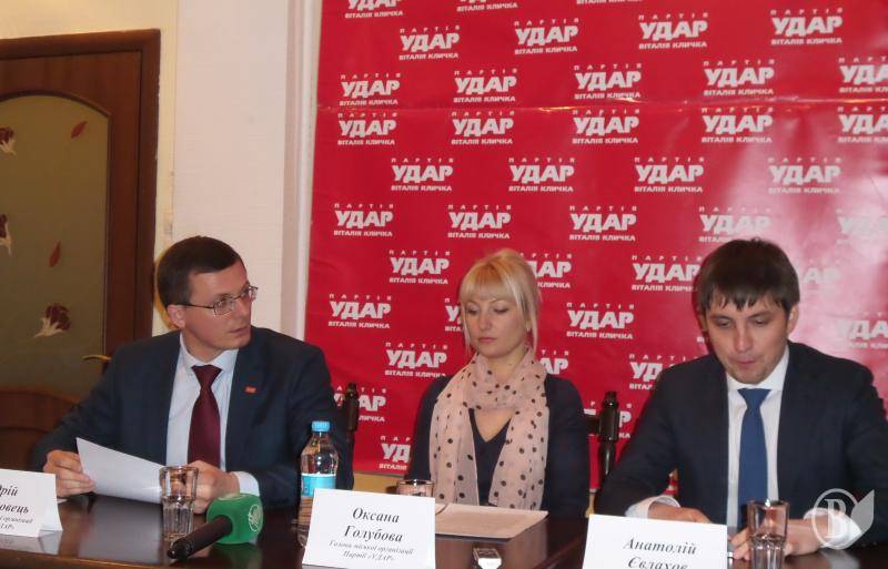 А про передвиборчу стратегію УДАРУ на місцевих виборах розповіли журналістам голови обласної організації Юрій Тарасовець, новообрана голова міської організації Оксана Голубова та депутат Верховної Ради України по виборчому округу № 207 – Антатолій Євлахов.