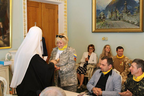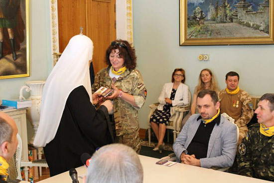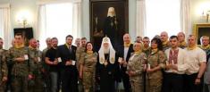 На зустріч зі Святійшим Патріархом прибули близько півсотні активістів «Самооборони Майдану», серед них і сотники Революції Гідності, які беруть участь у війні на Донбасі, або активно допомагають українській армії.