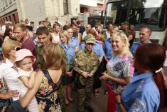 Провести бійців на Схід прийшли колеги, друзі та рідні міліціонерів. Журналісти могли на власні очі переконатися, що зведений загін повністю забезпечений харчами, обмундируванням, засобами захисту та озброєнням.