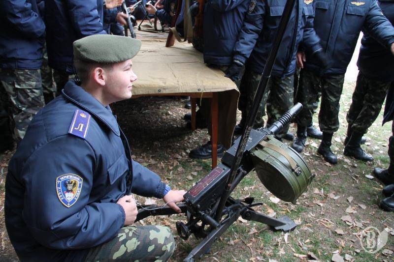Воины Черниговского специального подраздела"Афганец" в День защитника Украины дали возможность воспитанникам Черниговского лицея с усиленной военной и физической подготовкой ознакомиться с настоящим оружием.
