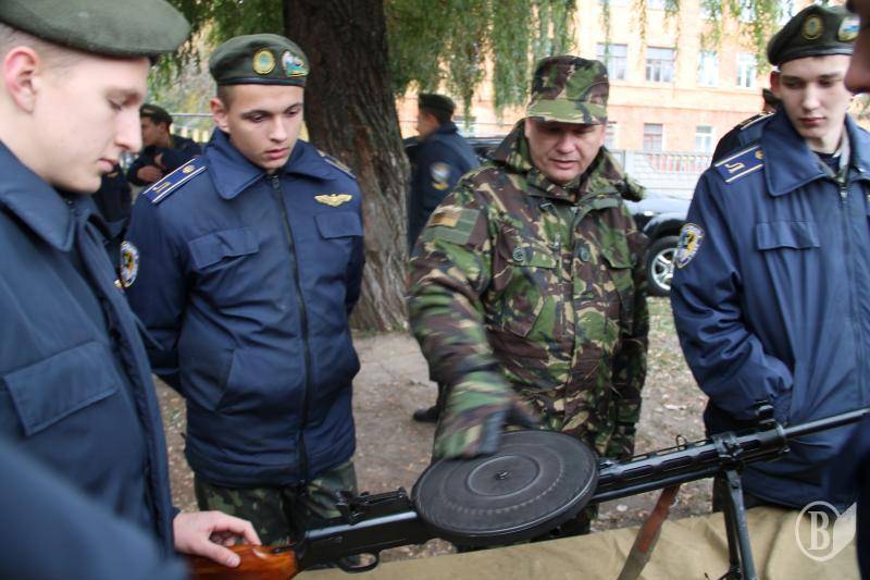 А еще один специалист военного дела по спецподразделению "Афганец" Виктор Рябченко организовал для лицеистов выставку стрелкового оружия и объяснил действие, назначение, историю всех представленных образцов.
