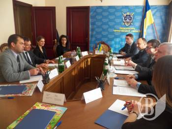 Перший заступник прокурора області Юрій Балєв повідомив представникам Місії про перші результати роботи за новим Законом України «Про прокуратуру», процес відкритого конкурсу на посади керівників місцевих прокуратур та їх заступників. Розповів про процес оптимізації штатної чисельності прокуратури, зокрема про скорочення працівників органів прокуратури області.