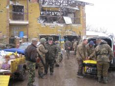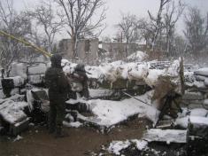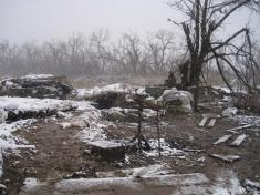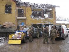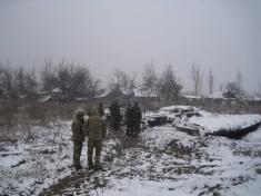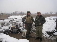 Надалі шлях чернігівських волонтерів пролягав через Піски. В селищі вже більше року не вщухають бої, до позицій Донецького аеропорту, тут рукою подати! Тут на крайній 18-й точці розташовані позиції добровольчого батальйону ОУН. Умови у воїнів, м’яко кажучи, спартанські, адже за рік активних обстрілів тут вціліло всього кілька будівель.