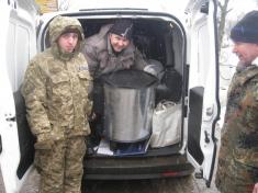 З наступом холодів дуже важливо мати теплі речі, тому волонтери подарували бійцям комплекти термобілизни, теплі шкарпетки та ковдри, плащі ОЗК. Не забули і про продукти харчуваня, овочі і консервацію. Одному бійцю з позивним "Монгол" подарували новий бронежилет.