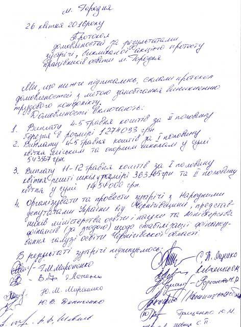Результатом протестної акції стало підписання Протоколу про домовленість щодо все ж таки виплати освітянам зароблених грошей.