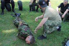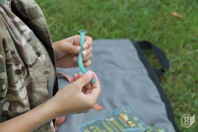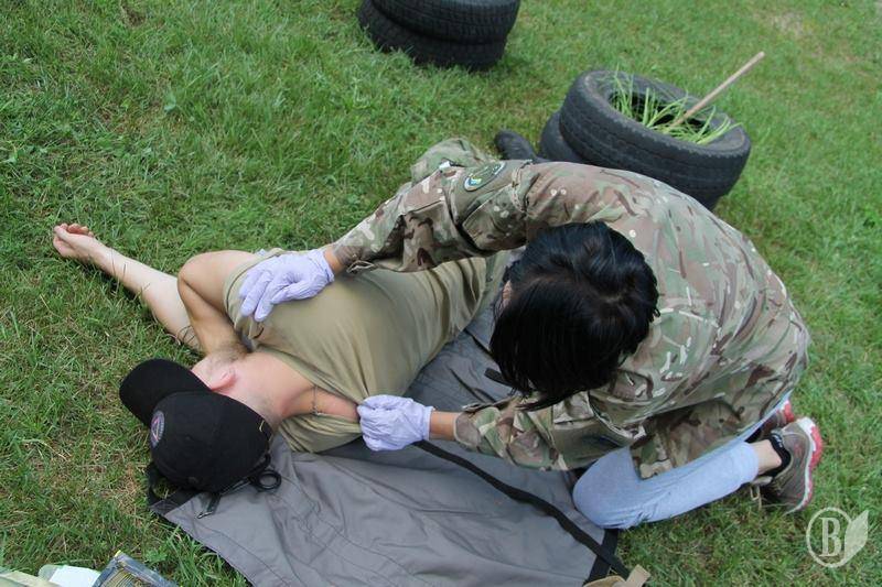 Бійці вчилися, як допомагати пораненому з допомогою індивідуальної аптечки , як зупиняти кров, оглядати пораненого, відновлювати його дихання та виносити постраждалого з поля бою.