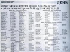 Спікер Верховної Ради Андрій Парубій, як і обіцяв, увіковічнив прізвища всіх депутатів-прогульників на сторінках парламентської газети.
