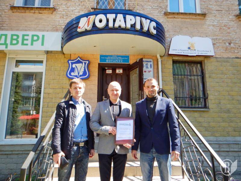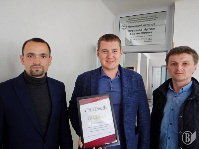 Заступник голови чернігівської «Справедливості» Володимир Березинський та керівник правого центру організації Олександр Приходько вручили подяки нотаріусам.