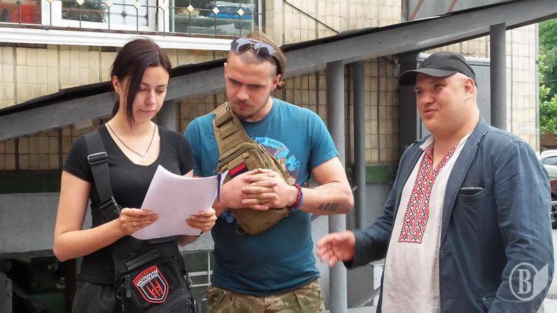 На фото: активісти у кабінеті заступника начальника – Вадима Потапенка