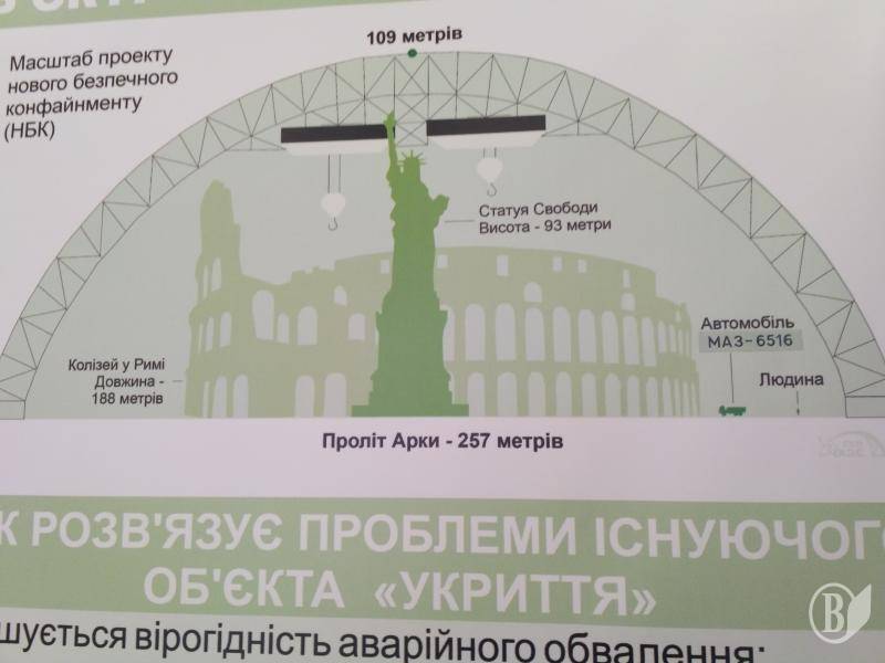 Будували укриття з 2012 року, розміри арки близько 165 на 260 метрів і висотою 110 метрів, що є вищим за американську статую Свободи. Представники громадськості поспілкувались з персоналом станції, стали учасниками навчань на випадок нештатної ситуації на АЕС, ознайомились з поточним станом ДСП «Чорнобильська АЕС» та НБК.