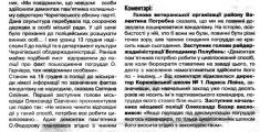 «"Маяк",як завжди,на "висоті", все своє існування тільки слухав "білий дім"– що писати і як,можна згадати останє привітання комуняк... Пам'ятники прибараєм – це добре, але осталося декілька ще самих керікників у томуж "домі"... на жаль», – пояснює Юрій Макаренко, маючи на увазі, ймовірно, будівлю місцевої адміністрації.