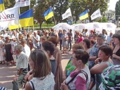 Біля будівлі Чернігівської дирекції ПАТ «Укрпошта» зібралися представники майже всіх районів області, щоб висловити невдоволення пілотним проектом, що впроваджується саме в нашій області, який передбачає закриття сільських відділень поштового зв’язку та звільнення працюючих там листонош.