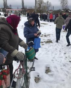 В селі Ковпита Чернігівського району, поруч з військовим смт Гончарівське, українська громада освячує Стрітенську воду та свічки.