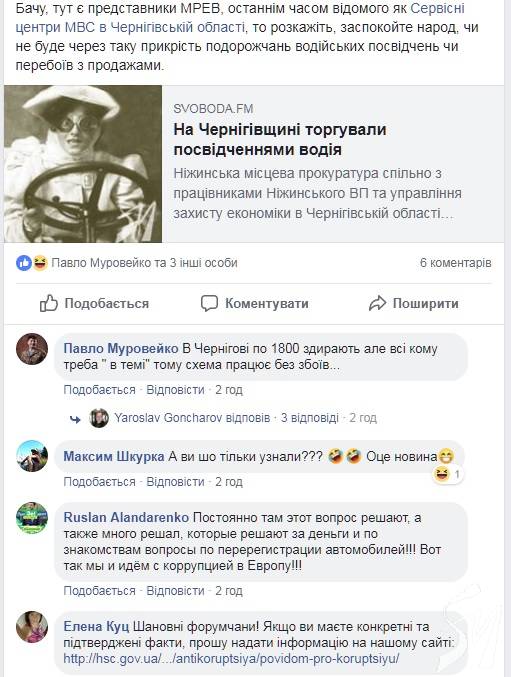 А інтернет-видання, мовляв, цією публікацією псує імідж сервісним центрам. Зокрема своїм заголовком (в першій його версії) «На Чернігівщині торгували посвідченнями водія».