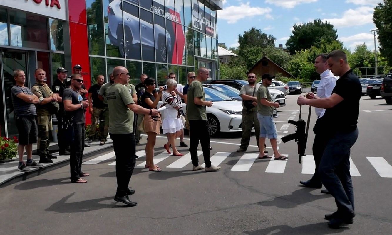 Через певний час туди викликали поліцію – під час спілкування з добровольцями один з охоронців мав при собі автомат.