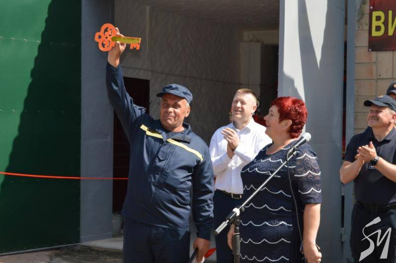 В ході урочистостей особовий склад місцевої пожежної команди отримав від керівництва УДСНС України у Чернігівській області сертифікат і ключі на пожежно-рятувальний автомобіль, посвідчення про проходження спеціальної підготовки, бойові рукавиці від польських колег. Символічний ключ відкриття відремонтованого пожежного депо вручила Любов Норикова.