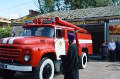 Після урочистого перерізання стрічки з відкриття депо, настоятель місцевої Свято-Успенської Церкви ієрей Степан освятив приміщення місцевої пожежної команди та благословив особовий склад підрозділу.