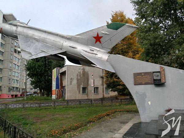 За часів СРСР біля в’їзду до Чернігівського вищого військового авіаційного училища льотчиків імені Ленінського Комсомолу, що здійснювало підготовку льотчиків для винищувальної авіації Військово-повітряних Сил СРСР, на постаменті було встановлено військовий реактивний літак МіГ-21.