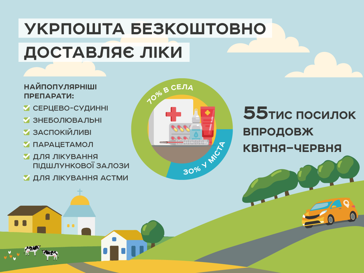 За останні три місяці українці замовили майже 55 тисяч посилок з медикаментами. Щодня в середньому оформлюється понад 1 000 замовлень та безкоштовно доставляється Укрпоштою.