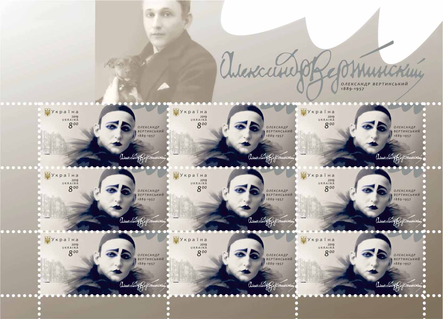 Відомого українського естрадного артиста, кіноактора, композитора, поета і співака Олександра Вертинського на поштовій марці зображено в образі П’єро, в якому він виступав на початку своєї творчої кар’єри.
