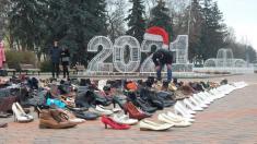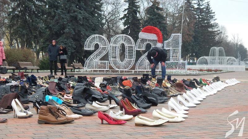 600 пар жіночих черевиків виставили на Алеї Героїв у Чернігові. Взуття принесли в рамках акції «16 днів проти насильства». Кожна пара символічна. Це згадка про жінок, які їх більше ніколи не одягнуть.