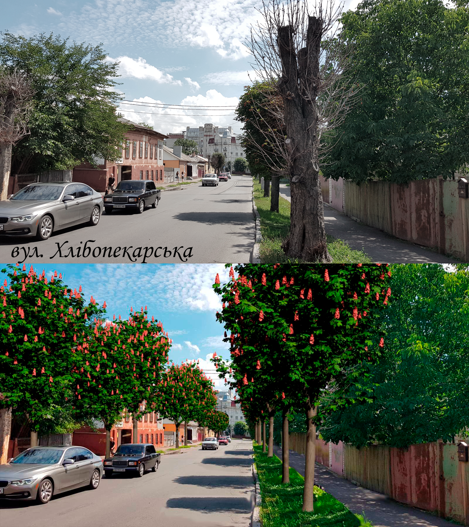 Ми зустрічалися з екоактивістами Сергієм Безбородьком і Мариною Рейко, і я наводив приклад. Дивіться, вулиця Хлібопекарська. Реконструкцією передбачена повна заміна каштанів. Це видалення 60 дерев. Натомість будуть висаджені 140. Відчуваєте різницю?..