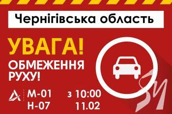 За дорученням Штабу з ліквідації наслідків надзвичайних ситуацій Укравтодору, з метою недопущення накопичення великовагових транспортних засобів та виникнення заторів в дорожньому русі Служба автомобільних доріг у Чернігівській області з 10:00 11 лютого вводить обмеження руху великовагових транспортних засобів в напрямку м. Київ на ділянках доріг