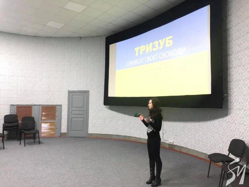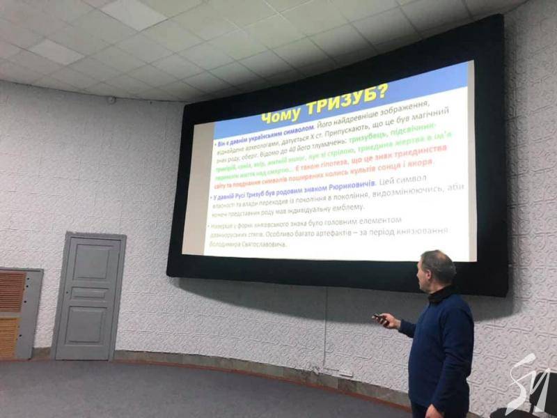 «З постанням нашої держави — Української Народної республіки в листопаді 1917 року, та проголошення її незалежності 22 січня 1918 року гостро стало питання щодо державного гербу. Яким він має бути? 25 лютого 1918 року на засіданні Малої Ради Української Центральної Ради був затверджений саме тризуб як герб УНР. Він переміг всі інші пізніші символи. Звертає увагу, що під час Української революції 1917-1921 років було випробувано кілька моделей національної державності. Проте, тризуб непохитно залишався. Впродовж всіх наступних буремних подій 20-го століття він був символом нашої свободи, соборності, боротьби за державну незалежність. Тому цілком природно, що після відновлення самостійної держави вже 19 лютого 1992 року парламент затвердив «тризуб як малий герб України, вважаючи його головним елементом великого герба України». З 2014 року тризуб символізує також непохитну волю нашого народу збройно відстояти у війні з російським агресором свободу і незалежність», — повідомив Сергій БУТКО, співробітник Українського інституту національної пам’яті.