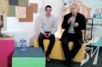 Вікторія УСПЕКОВА, ведуча цього заходу, співробітник Обласного молодіжного центру, у першій частині студійної зустрічі спілкувалася з Юрієм КОНОПЛЬОЮ, учасником Революції Гідності, який тоді вчився в одній зі шкіл м. Чернігів, а зараз магістрант Академії державної пенітенціарної служби України, юридичний консультант Чернігівського обласного молодіжного центру, та Сергієм СОЛОМАХОЮ, громадським діячем, борцем за незалежність України у 20 столітті, активним учасником Помаранчевої революції та Революції Гідності.
