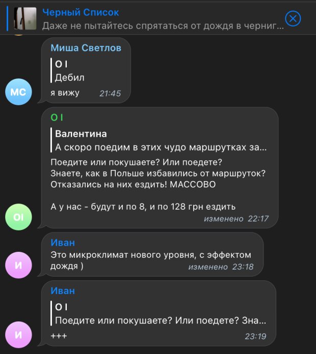 "Навіть не намагайтеся сховатися від дощу в чернігівських маршрутках... він все одно промочить вас до нитки. Маршрутка №30. # Чернігів " - сказано в повідомленні в Telegram-каналі.